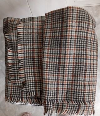 Bufanda con diseño de cuadros, ideal para complementar tu estilo. - Patrón de cuadros clásico. - Acabado con flecos en los extremos. Está sin usar.