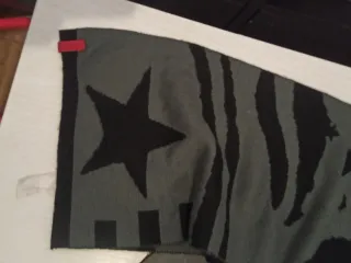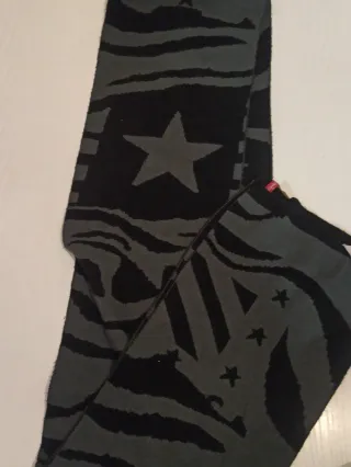 Bufanda con un diseño llamativo de estrellas y estampado de cebra. - Tejido suave y cálido. - Diseño reversible con dos patrones. - Ideal para complementar cualquier atuendo.