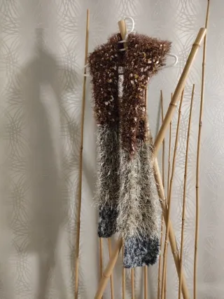 Bufanda de lana con un diseño elegante y texturas variadas. Hecha a mano un uso - Acabado suave y mullido. - Diseño degradado con diferentes tonalidades.