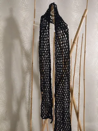 Bufanda tejida con un diseño abierto y elegante. - Material: Lana - Color: Negro - Diseño: Tejido de red