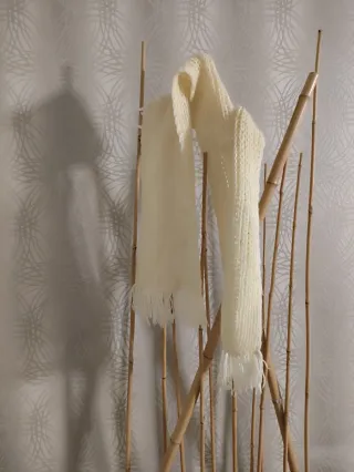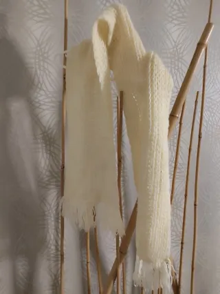 Bufanda de lana en tono crema, con un diseño tejido y flecos en los extremos. Hecha a mano abriga - Material: Lana. - Color: Crema.