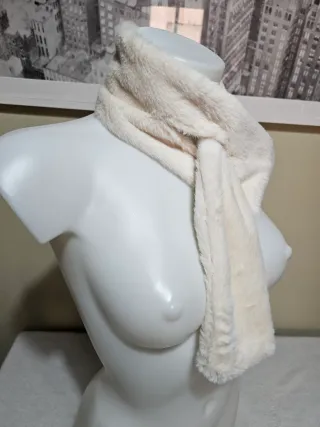 Bufanda suave y cálida de pelo sintético. - Color beige. - Tacto muy agradable.