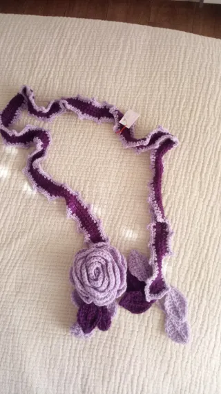 Bufanda tejida morada con flor