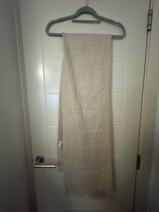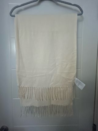 Pañuelo suave y elegante de H&M. - Color beige. - Diseño con flecos en los extremos.