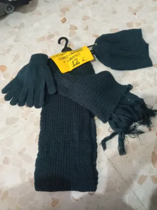 Conjunto gorro, bufanda y guantes punto