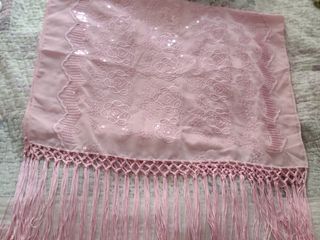 chal con piedras brillantes color rosa .mide de largo 1,60 cm y de ancho 55