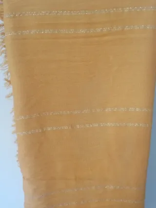 Elegante pashmina árabe con un bonito diseño. - Adornada con finas líneas doradas. - Flecos en uno de los extremos. Medidas 182x90 cms preciosa, sin estrenar