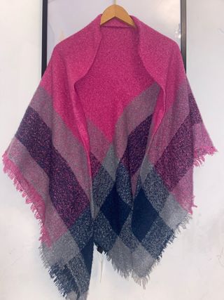 Bufanda grande con diseño a cuadros en tonos vibrantes. - Diseño cuadrado. - Acabado con flecos. - Tejido suave y cálido.