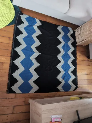 Manta o bufanda versátil con un diseño geométrico llamativo. - Patrón de rombos en zigzag. - Flecos en los bordes.