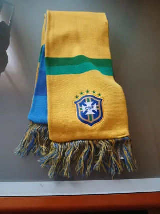 Bufanda de coleccionista de la selección de Brasil. - Diseño con los colores de la bandera brasileña. - Escudo de la CBF bordado. - Flecos en los extremos.