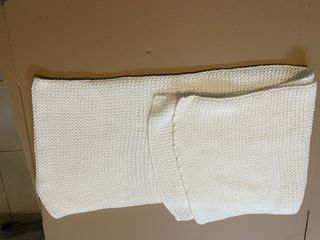Preciosa bufanda de punto, color blanco. Es suave y acogedora, perfecta para el invierno. - Tejido de punto. - Diseño sencillo y elegante.