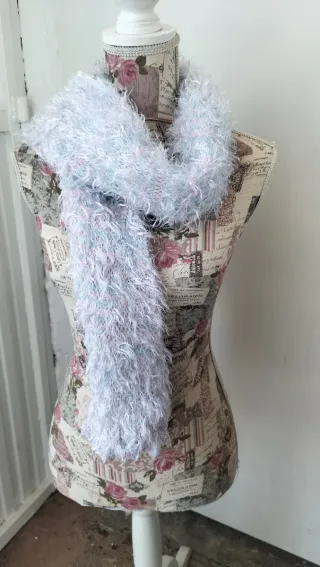 Bufanda de diseño, muy suave al tacto, con un bonito acabado que combina tonos azules y rosas. - Material: acrílico - Diseño: fuzzy, peluche - Estilo: elegante, moderno