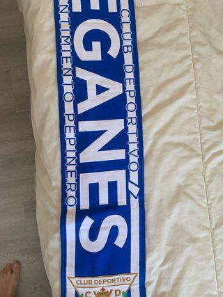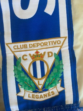 Bufanda oficial del Club Deportivo Leganés. - Diseño con el nombre del equipo. - Colores azul y blanco.