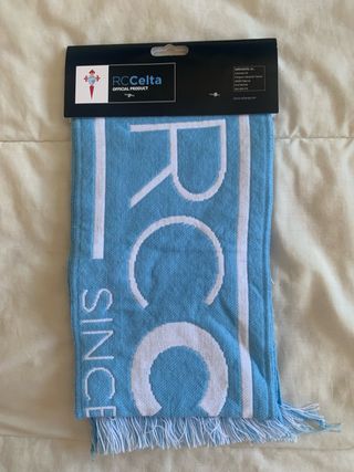 Bufanda oficial del RC Celta. - Diseño tejido con el logo del club. - Franjas blancas y detalles en azul.