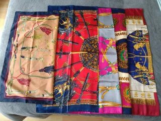 Lote de 5 pañuelos vintage. - Diseños variados con motivos ecuestres, florales, etc. - Tacto suave y ligero.