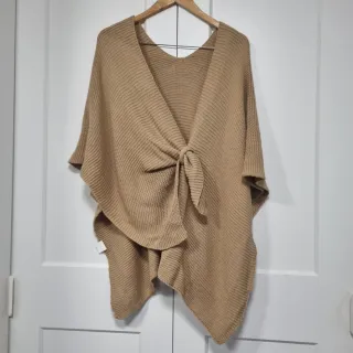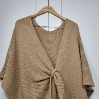 Echarpe de punto en color camel, ideal para complementar tu atuendo. - Tejido suave y cálido. - Diseño anudado al frente. - Corte asimétrico.