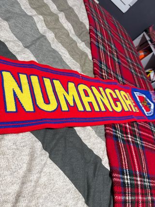 Bufanda del C.D. Numancia. - Diseño con los colores del equipo. - Borde con flecos.
