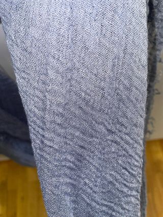 Pañuelo de tela ligera con un acabado arrugado y flecos en los extremos. - Textura arrugada. - Flecos decorativos en los bordes.