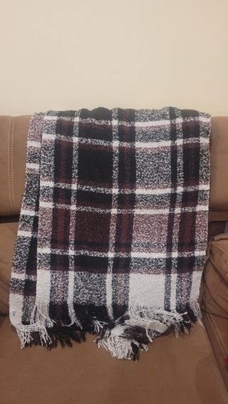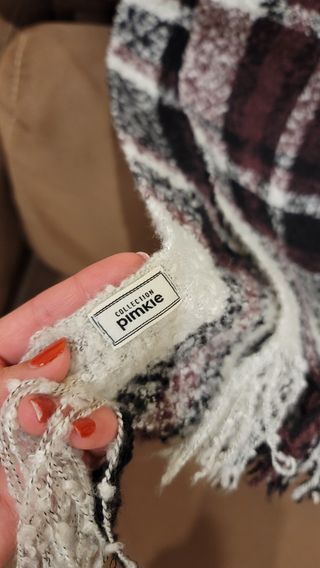 Bufanda oversize de Pimkie de cuadros en color negro, blanco y burdeos, tacto super suave, muy blandita y amorosa, y muy calentita! Utilizada muy pocas veces. Descuentos si compras más de un artículo! 😊