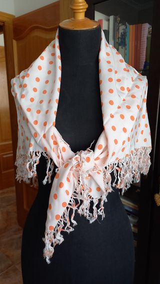 Pañoleta en algodón blanco con topos naranjas. Feria de Abril. Envío a partir de 5€.