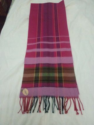 Bufanda de cuadros en tonos fucsia ,verde caza y negro ,muy suave , preciosa ,sin estrenar