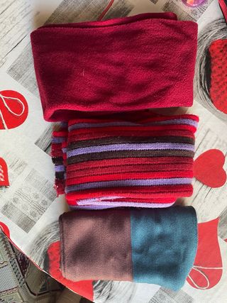 Vendo bufandas dos en buen estado y muy poco uso y la de color azul nueva sin estrenar. Las puedo vender sueltas o en pack. Precio por unidad: 2€ Precio del pack de 3 bufandas: 5€