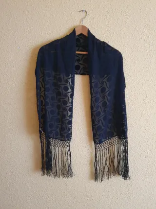 Bufanda fina azul marino, de Cashmere. Acabado flecos. 180 x 66 cm. En perfecto estado.