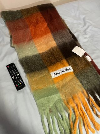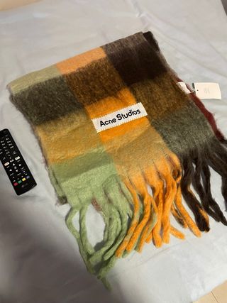 Bufanda de Acne Studios con diseño a cuadros. - Diseño a cuadros en tonos verdes y naranjas. - Acabado con flecos. - Gran tamaño 230x39 - Regalo perfecto para tu pareja