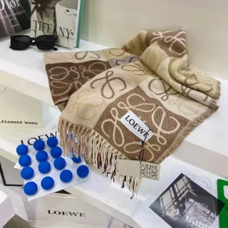 Bufanda con el distintivo estampado de Loewe. - Diseño a cuadros. - Motivos de la marca. - Flecos en los extremos.