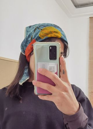 Pañuelo de colores mezcla algodón y seda. Nuevo con etiqueta. Estilo años 80s.