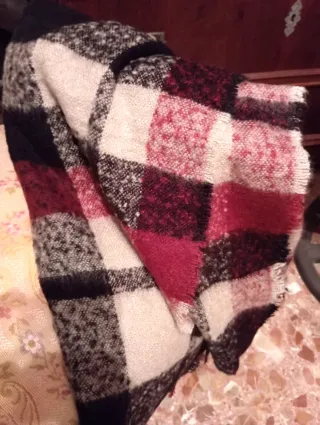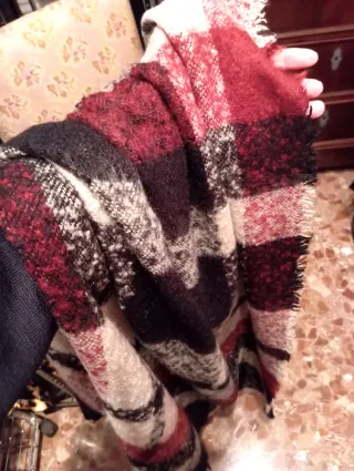 1 Bufanda de Zara con un diseño de cuadros clásico. Es suave y cálida. Gran tamaño, se puede usar como chal. Tamaño: 200cm x 80cm + 1 Bufanda de tacto suave y muy cálida color Borgoña + 1 Boa de pelo suave Todo 18€