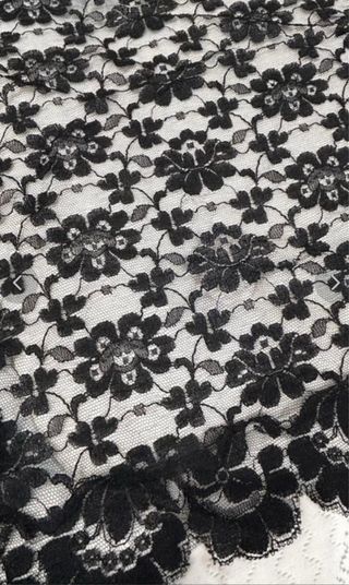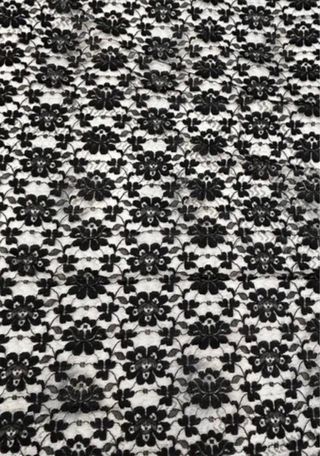 Elegante mantilla de encaje con un delicado diseño floral. - Tejido de encaje intrincado. - Patrón de flores y hojas. - Borde festoneado.