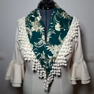 Mantón Flamenca Madroños Oro y Verde