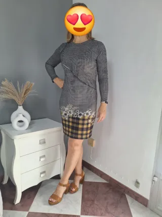 Vestido de manga larga con un diseño elegante y un contraste de color llamativo. Talla S, perfecta para 36/38.
