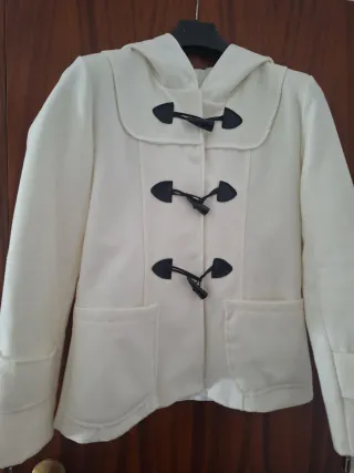 Abrigo de paño con un diseño moderno y juvenil. Perfecto para añadir un toque elegante a tus outfits. Talla única, perfecta hasta talla 40. - Cierre con botones de cuerno. - Bolsillos frontales. - Capucha integrada.