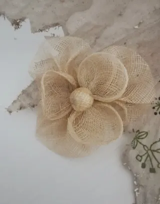 Conjunto de broche y pendientes con diseño de flor. Color beige. Se puede comprar junto o por separado. A 2€ la unidad.