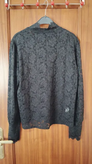 Camiseta de manga larga, talla grande XL, ancho de hombros 44 cm, ancho de pecho 50 y de largo 60 cm, con un delicado diseño de encaje. - Tejido de encaje floral. - Mangas largas. - Cuello redondo.
