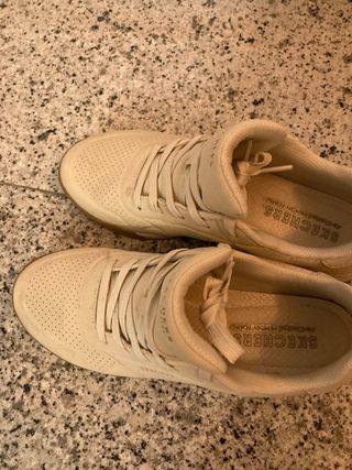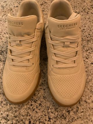 Zapatillas de piel en color beige. - Cierre de cordones. - Detalle de perforaciones en la puntera. - Suela de goma.