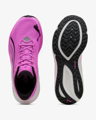 Zapatilla de running Puma Nitro Electrify en color rosa y negro. - Diseño deportivo y moderno. - Suela blanca con detalles en rosa. - Cordones rosas. - Detalle reflectante en la puntera.
