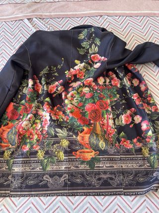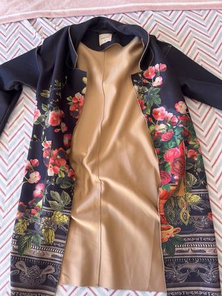 Elegante abrigo de la marca Sweet Miss con un llamativo estampado floral. - Diseño abierto. - Forro interior en tono camel. - Manga larga.