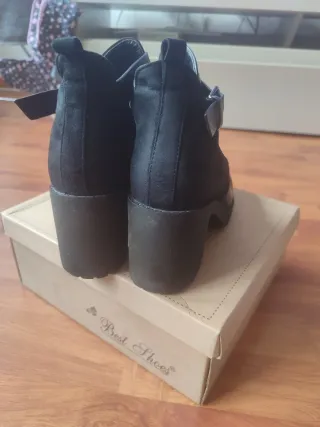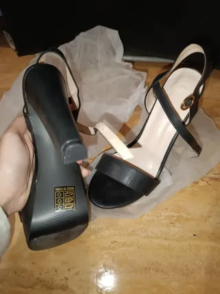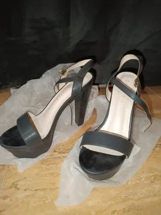 Elegantes tacones negros con plataforma, talla 36, marca Colour Cherie (no hacer caso a la marca de la descripción, me obligan a poner una y esta no la tienen). Me los compre y me los probé un par de veces en casa, se quedaron esperando el "momento perfecto" y ahora me quedan pequeños... Así que nunca se han estrenado, no tengo la caja, pero tienen todas las etiquetas. - Diseño de tiras con sujeción en tobillo. - Tacón grueso y alto, más plataforma. - Cierre de hebilla.