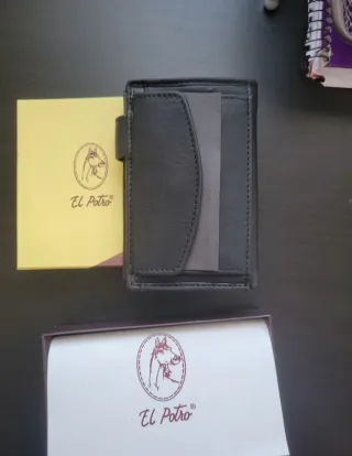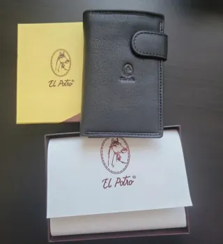 Elegante cartera de piel de la marca El Potro. - Material: Piel genuina. - Cierre de botón a presión. - Compartimentos para tarjetas, billetes y monedas. - Diseño clásico y funcional.
