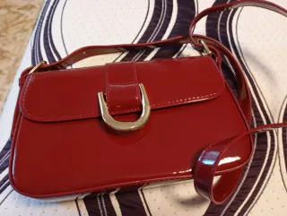 Elegante bolso de charol en color rojo brillante. Un accesorio llamativo con detalles metálicos dorados. - Acabado de charol. - Cierre con hebilla. - Correa ajustable.
