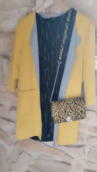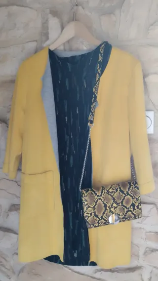 Abrigo fino de corte recto Vestido con un bonito estampado y corte - Incluye bolso a juego con cadena.