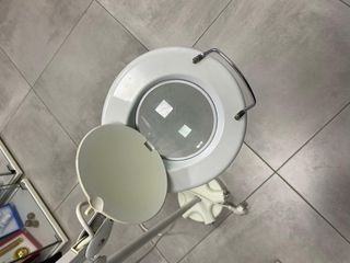 Lámpara de estética con lupa incorporada. Ideal para trabajos de precisión. - Diseño moderno en color beige y blanco. - Brazo flexible para ajustar la posición. - Interruptor de encendido/apagado. - Asa superior para facilitar el transporte.