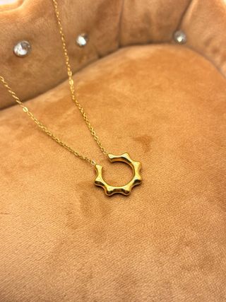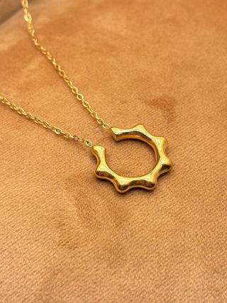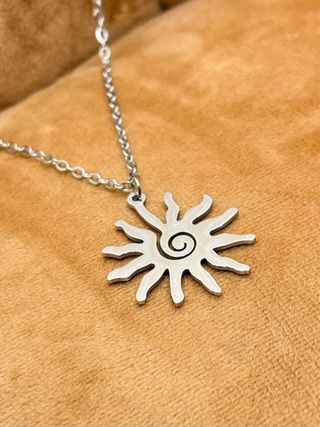 Collar artesanal con colgante de sol, fabricado en acero inoxidable 316L. No se oxida, no pierde color y es hipoalergénico, ideal para uso diario. ✨ Diseño minimalista y atemporal ✨ Hecho a mano – pieza única ✨ Apto para pieles sensibles ✨ Largo total 44 cm. Diseño exclusivo de El rincón de la Radiola. Perfecto para regalar o para llevar siempre.