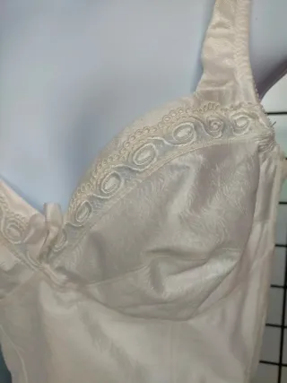 Sujetador de cuerpo de la marca Little Kiss en color blanco. Un diseño elegante con detalles de encaje. - Copas con relleno. - Tirantes ajustables. - Adorno de lazo en el centro.