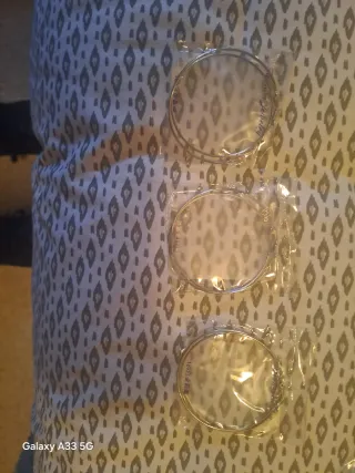 Set de 3 pares de pendientes de aro. - Diseño circular. - Acabado plateado.