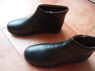 Zapatosde piel sintética en color negro. Cuentan con un diseño moderno y práctico. Sin uso. Precio negociable. - Cierre de cremallera lateral. - Interior forrado de pelo para mayor comodidad. - Suela antideslizante resistente de goma dura.