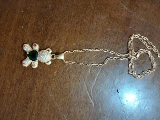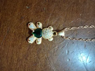 Este encantador colgante tiene la forma de un osito. - Diseño con incrustaciones de piedras de colores. - Cadena dorada.